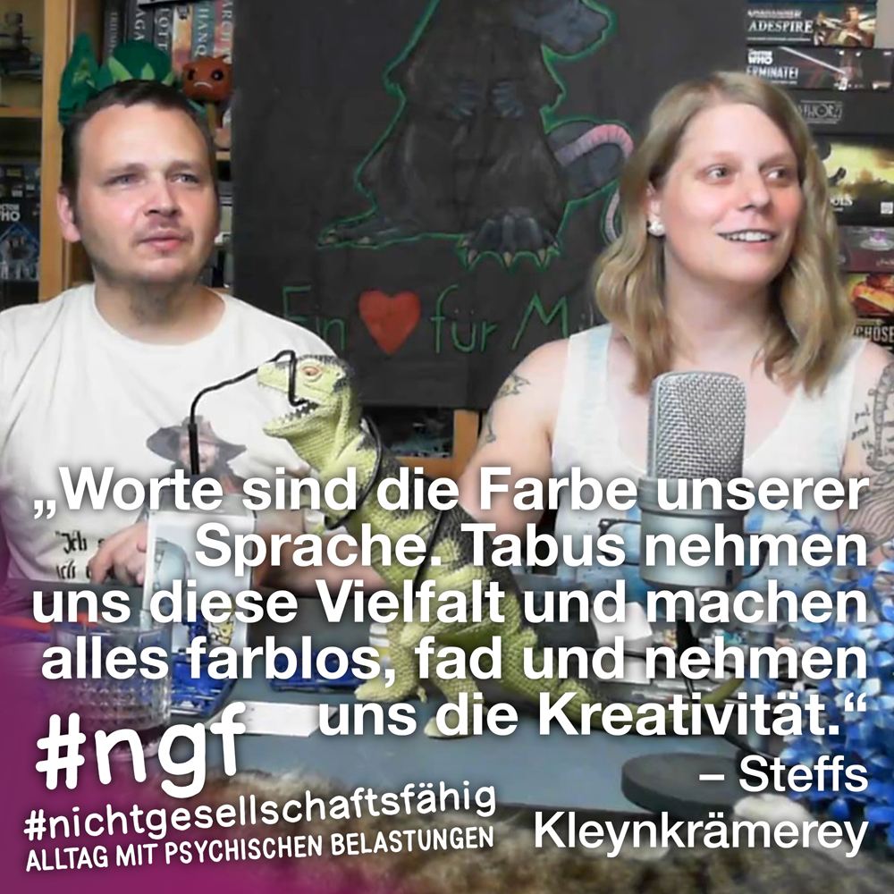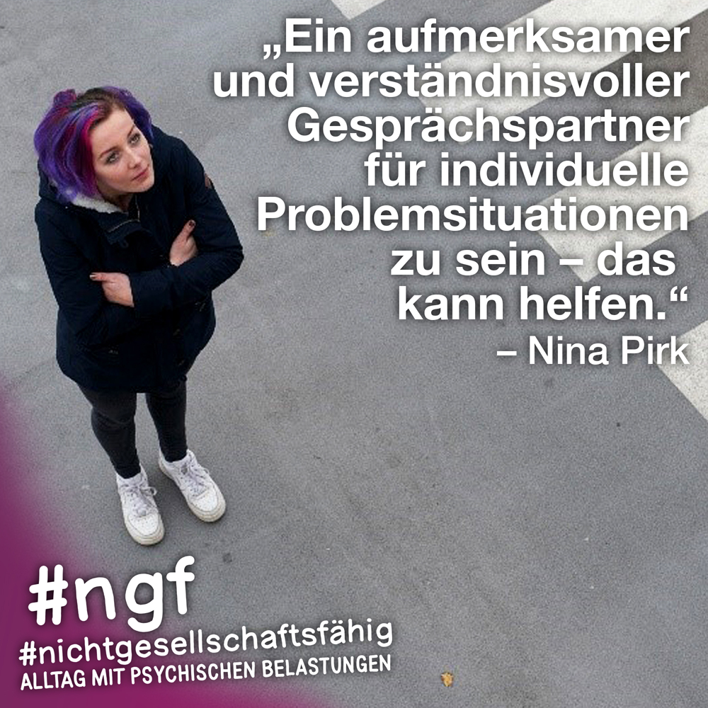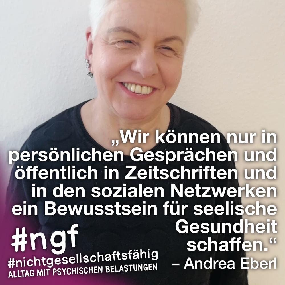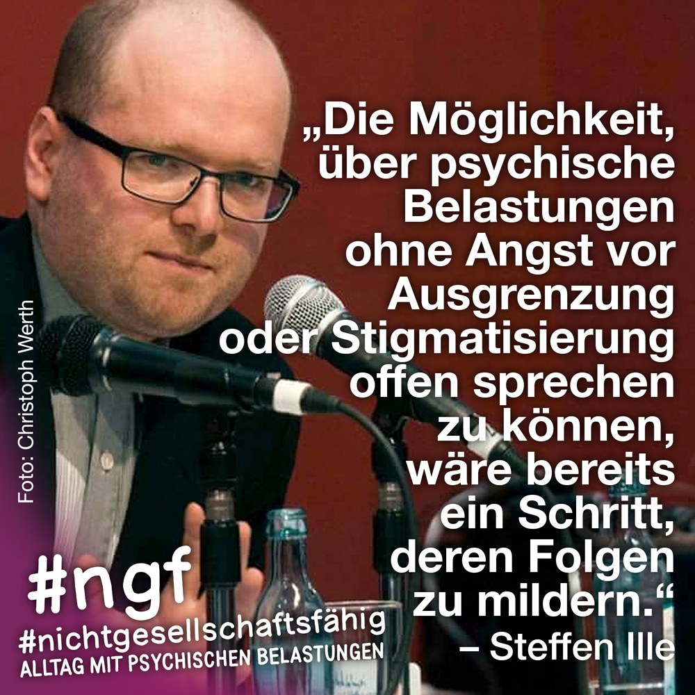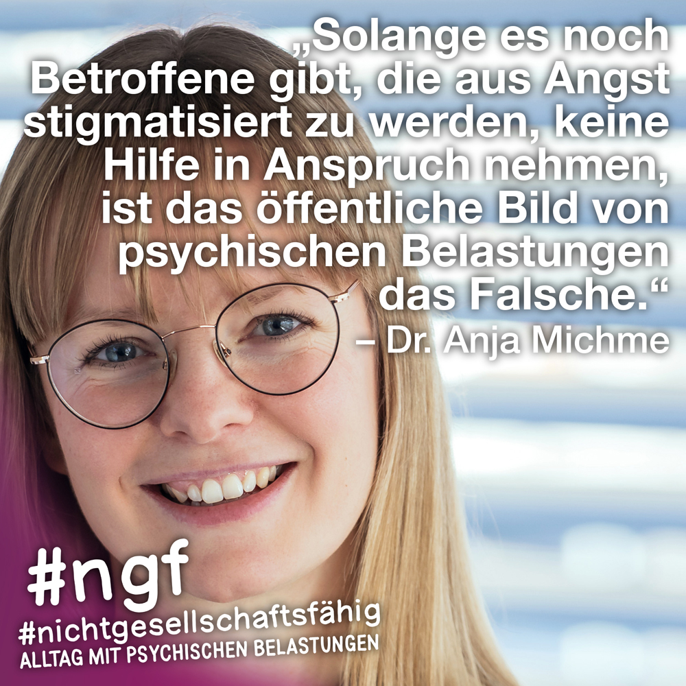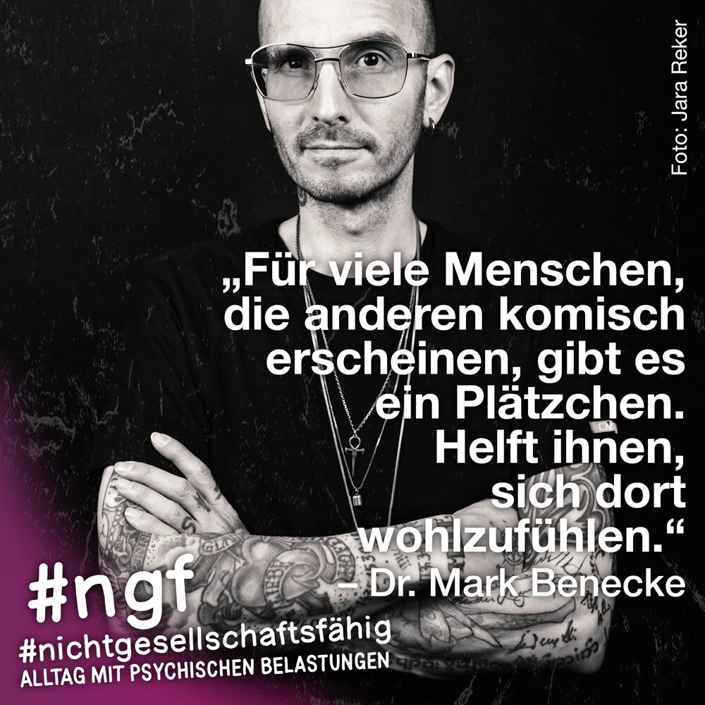 Unser Buch spricht auch deshalb mit vielen Stimmen, weil sowohl Betroffene als auch die, die täglich auf die verschiedenen Art und Weisen in-it sind, zu Wort kommen und auch die, die „an sich“ nicht tagtäglich mit psychischen Belastungen konfrontiert sind, sondern #nichtgesellschaftsfähig unterstützen, weil es wichtig ist. Das ist genau die Mischung, die wir möchten, weil genau auch das zur Enttabuisierung beiträgt und die Angst für alle nimmt. Die Angst davor, #nichtgesellschaftsfähig zu sein, sich nicht offen zu seinen psychischen Belastungen „bekennen zu dürfen“ und zu können, weil es gesellschaftlich so „abseitig“ anmuten mag und keiner darüber spricht, und die Angst davor, mit psychischen Belastungen konfrontiert zu sein.