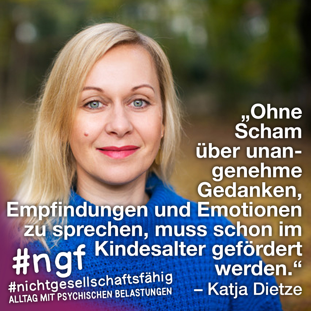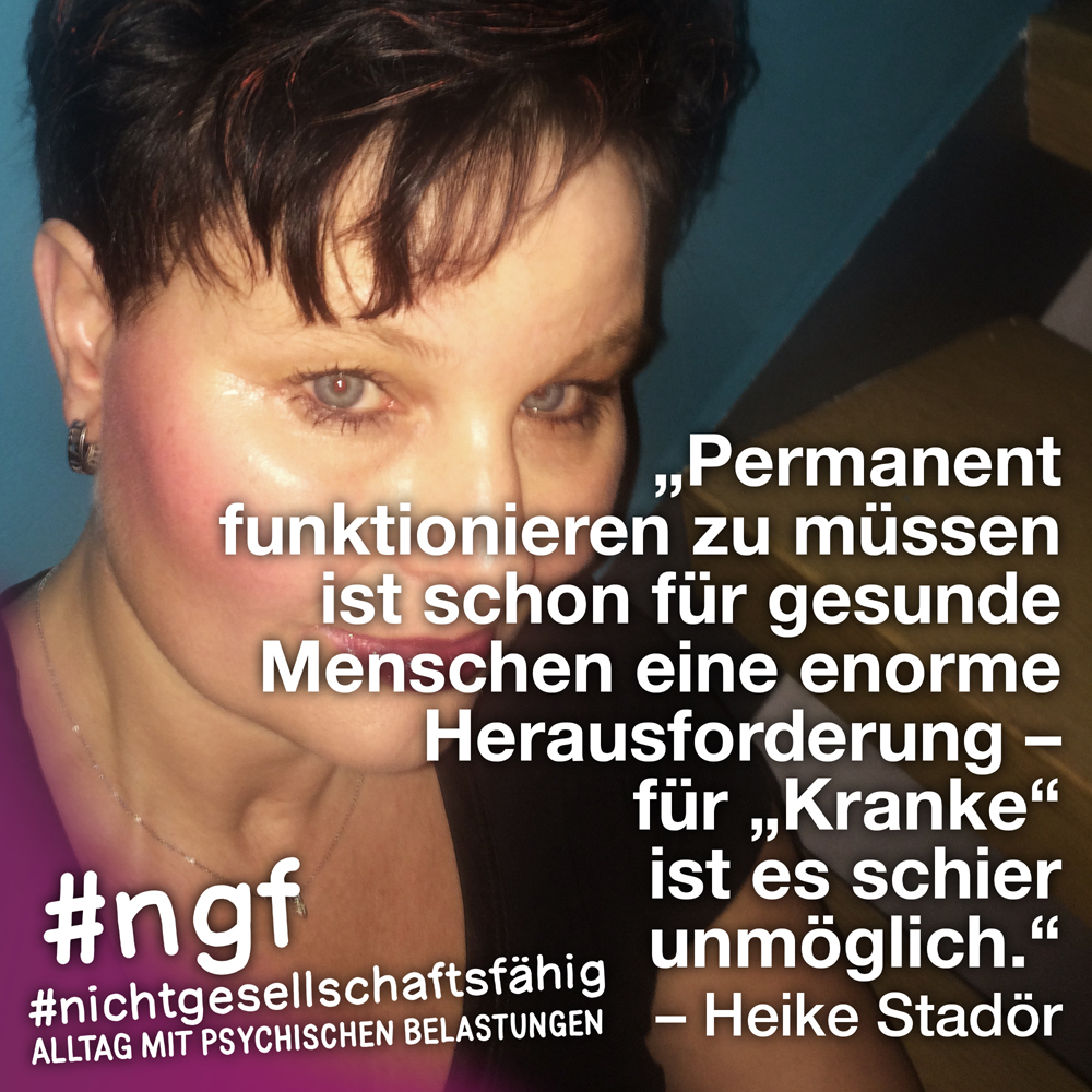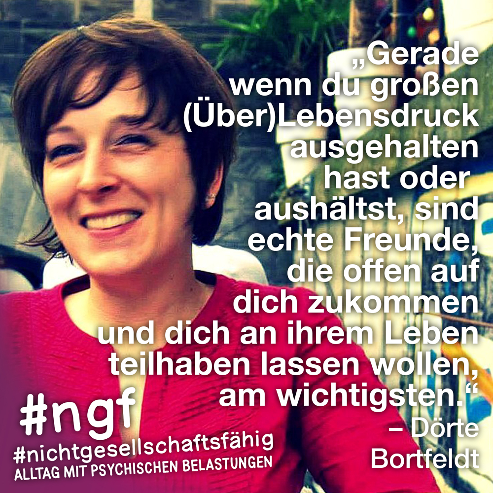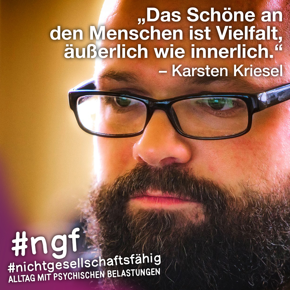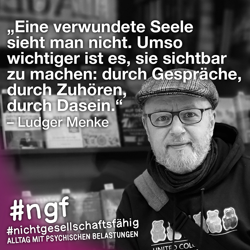 Unser Buch spricht auch deshalb mit vielen Stimmen, weil sowohl Betroffene als auch die, die täglich auf die verschiedenen Art und Weisen in-it sind, zu Wort kommen und auch die, die „an sich“ nicht tagtäglich mit psychischen Belastungen konfrontiert sind, sondern #nichtgesellschaftsfähig unterstützen, weil es wichtig ist. Das ist genau die Mischung, die wir möchten, weil genau auch das zur Enttabuisierung beiträgt und die Angst für alle nimmt. Die Angst davor, #nichtgesellschaftsfähig zu sein, sich nicht offen zu seinen psychischen Belastungen „bekennen zu dürfen“ und zu können, weil es gesellschaftlich so „abseitig“ anmuten mag und keiner darüber spricht, und die Angst davor, mit psychischen Belastungen konfrontiert zu sein.