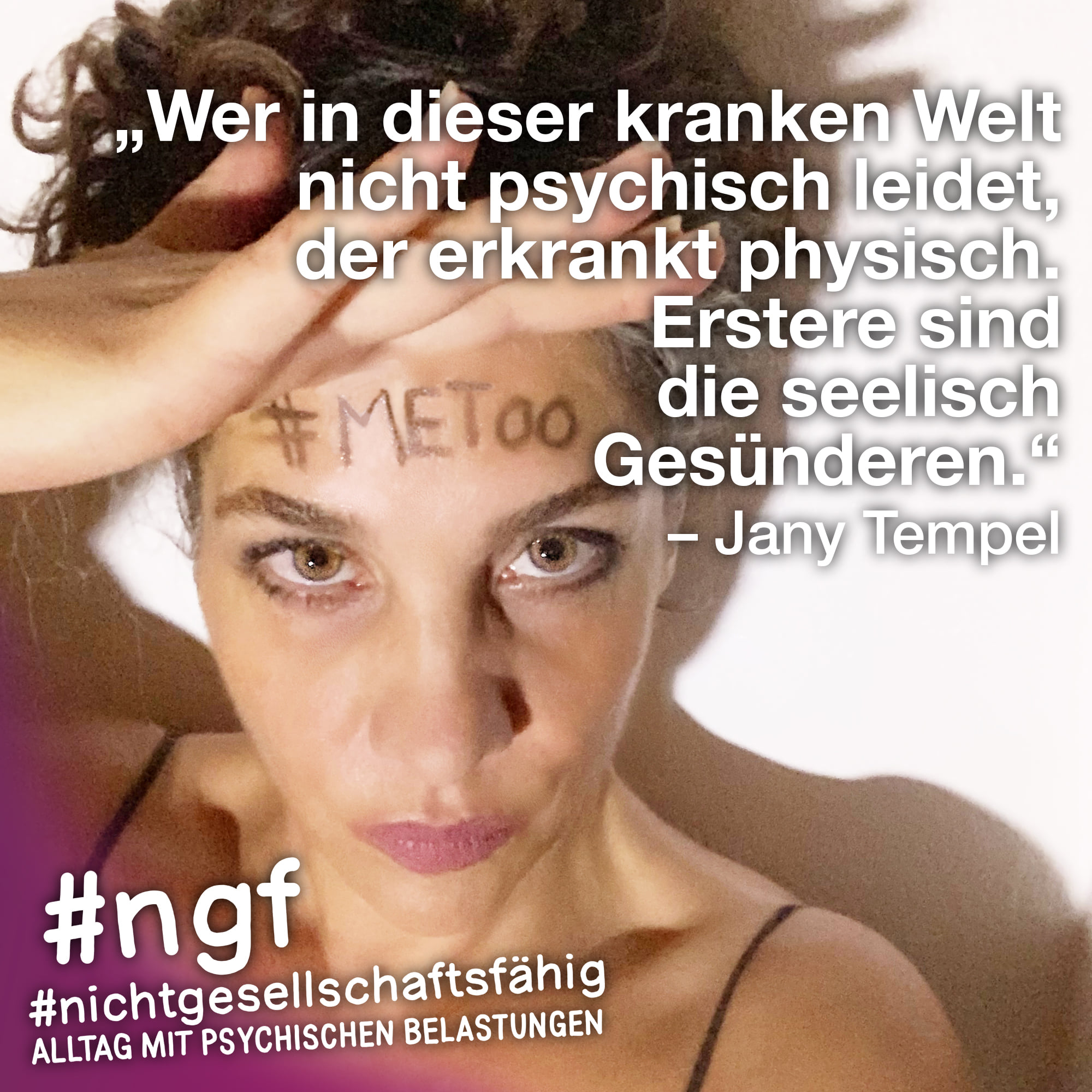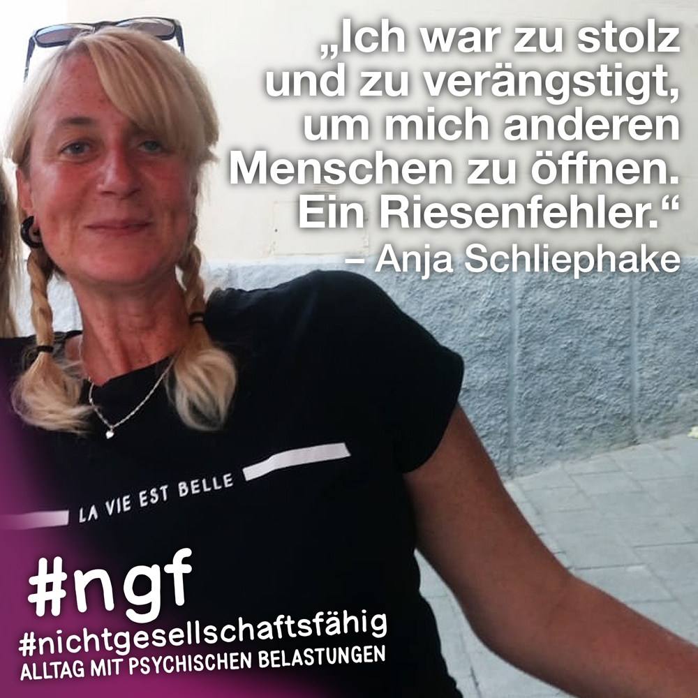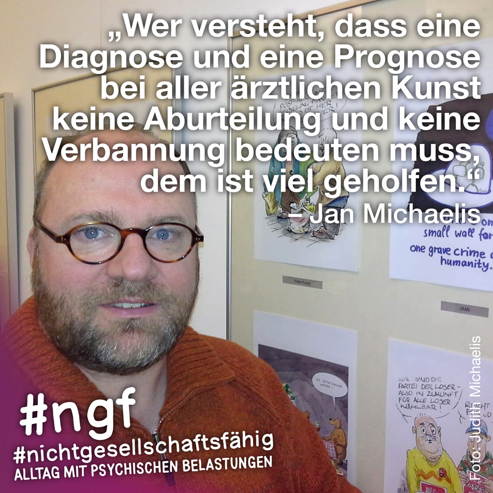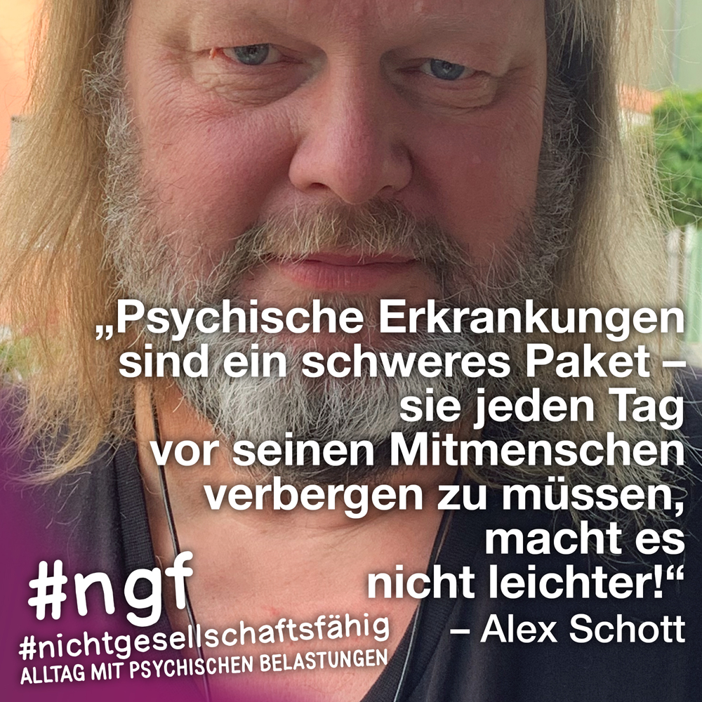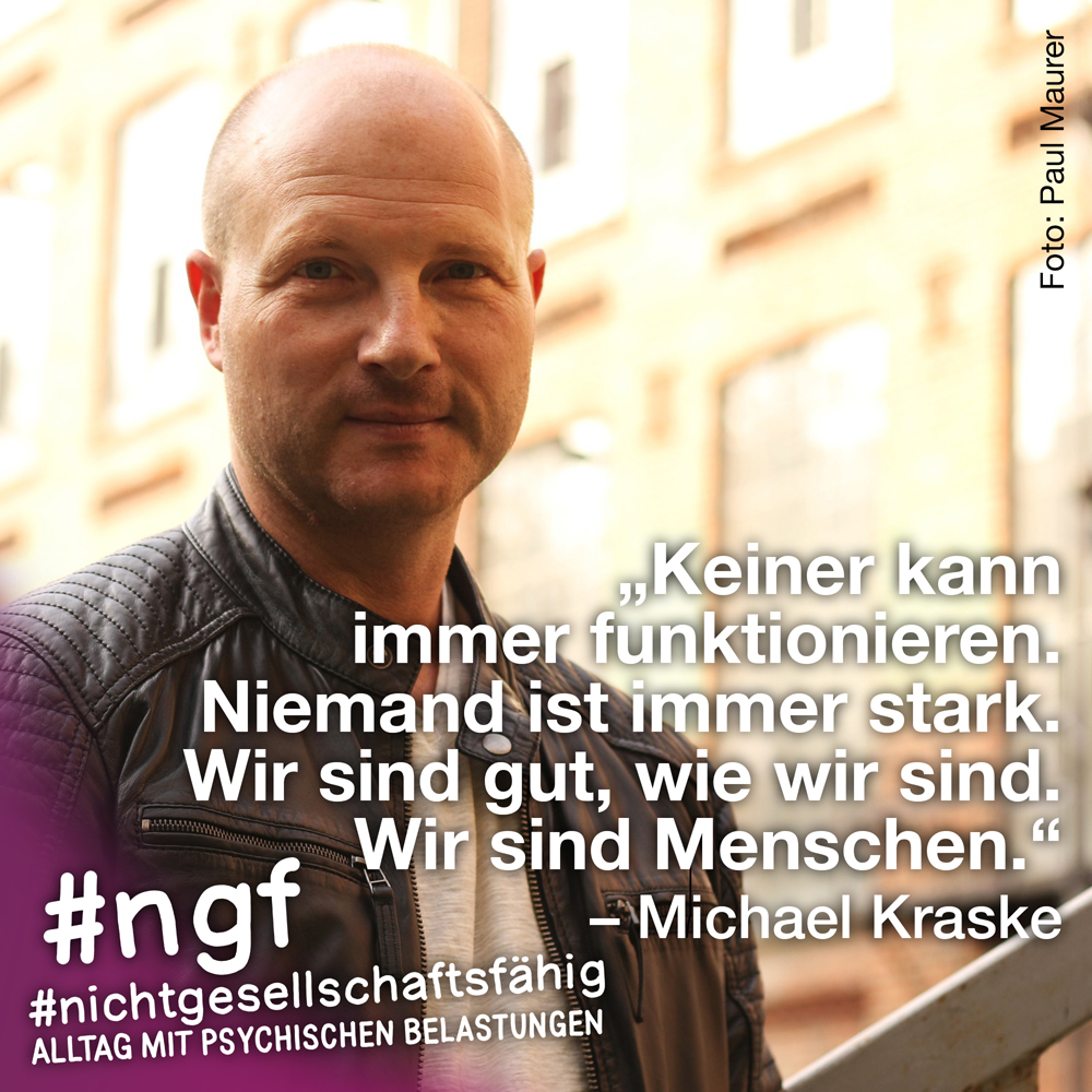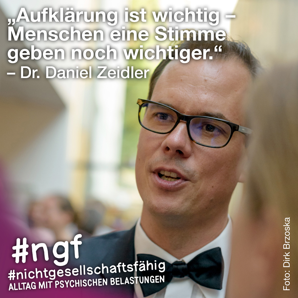 Unser Buch spricht auch deshalb mit vielen Stimmen, weil sowohl Betroffene als auch die, die täglich auf die verschiedenen Art und Weisen in-it sind, zu Wort kommen und auch die, die „an sich“ nicht tagtäglich mit psychischen Belastungen konfrontiert sind, sondern #nichtgesellschaftsfähig unterstützen, weil es wichtig ist. Das ist genau die Mischung, die wir möchten, weil genau auch das zur Enttabuisierung beiträgt und die Angst für alle nimmt. Die Angst davor, #nichtgesellschaftsfähig zu sein, sich nicht offen zu seinen psychischen Belastungen „bekennen zu dürfen“ und zu können, weil es gesellschaftlich so „abseitig“ anmuten mag und keiner darüber spricht, und die Angst davor, mit psychischen Belastungen konfrontiert zu sein.